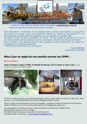 Voici le courriel de nos Moulins pour vous rappeler les bonnes adresses des JPPM 2024.